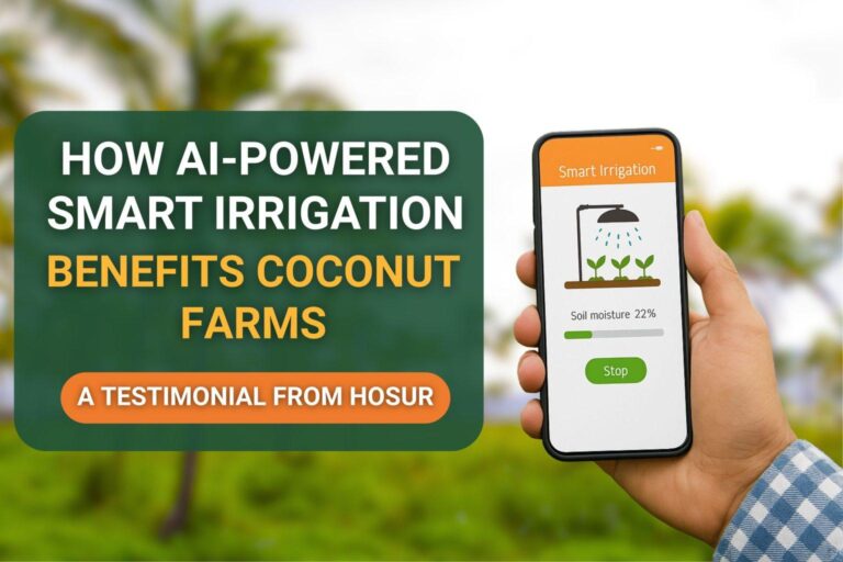 and inconsistent coconut yield. Managing irrigation manually became difficult,